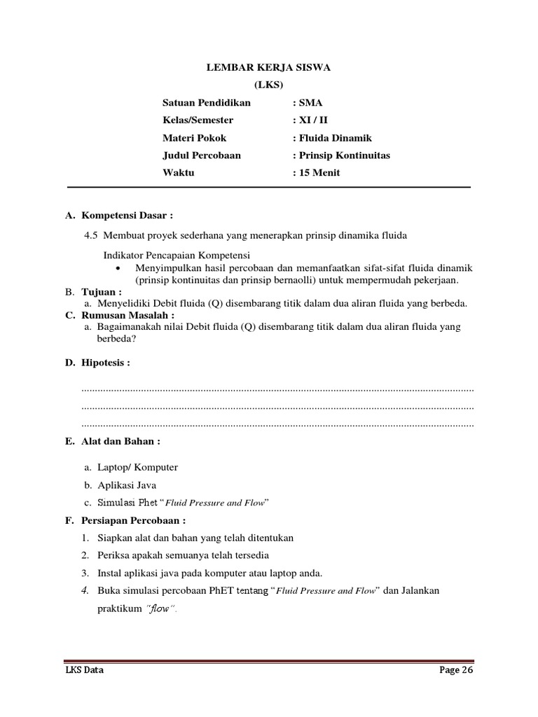Pengembangan Modul Fisika Berbasis Inkuiri Terbimbing Materi Fluida Dinamis Jurnal Pendidikan Fisika Dan Sains Jpfs from journal.unucirebon.ac.id Fluida dinamis adalah fluida yang bergerak, di sini kita mengganggap fluida ideal. Fisika kelas xi sma semester 2 fluida : Stem hi'rolik 'en%an 0ermat . Home/administrasi/download rpp kelas 11 (xi) sma/ma kurikulum 2013 revisi 2018 doc. Fluida dapat disebut juga seba. Satuan pendidikan mata pelajaran kelas/semester materi pembelajaran pertemuan rencana pelaksanaan pembelajaran rencana pelaksanaan pembelajaran (rpp) kurikulum 2013 untuk sma/ma kelas x. Mencakup debit, persamaan kontinuitas, hukum bernoulli dan toricelli dan gaya angkat pada sayap pesawat. Buku kurikulum 2013 edisi revisi untuk sma kelas x dan kelas xi.